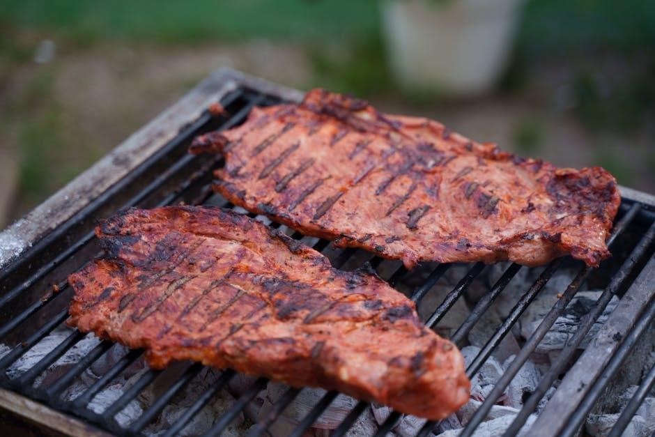PDF instructions detail how to achieve tender, fall-off-the-bone ribs using the grill’s consistent heat. Glazes, inspired by New Orleans barbecue traditions, are common, featuring brown sugar, molasses, and a touch of vinegar. These recipes emphasize monitoring internal temperature for safe and delicious results, offering a simplified route to authentic flavors.