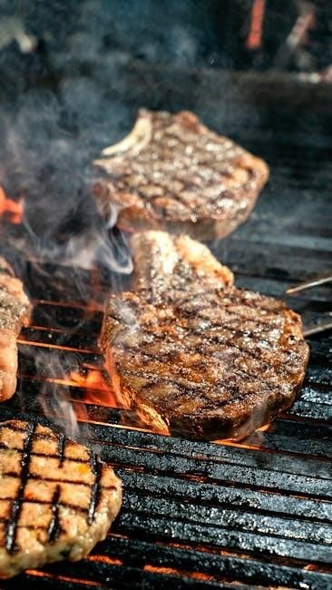 Guides often provide specific grilling times based on steak thickness and desired doneness. The grill’s contact cooking method helps to sear the steak quickly, creating a flavorful crust. Many PDFs include simple seasoning suggestions, highlighting the grill’s ability to deliver a surprisingly satisfying steak experience.