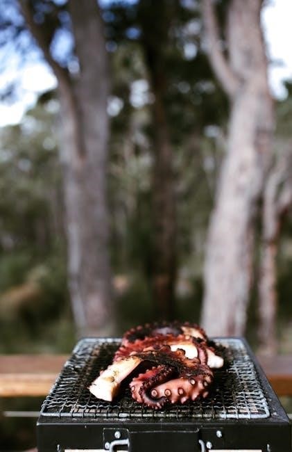 These PDF resources emphasize shorter grilling times for seafood to avoid overcooking. Many recipes incorporate citrus flavors, herbs, and spices to complement the fish or shrimp. Detailed instructions cover pre-seasoning, grill temperature settings, and techniques for achieving flaky, moist results, proving the grill isn’t just for meats!